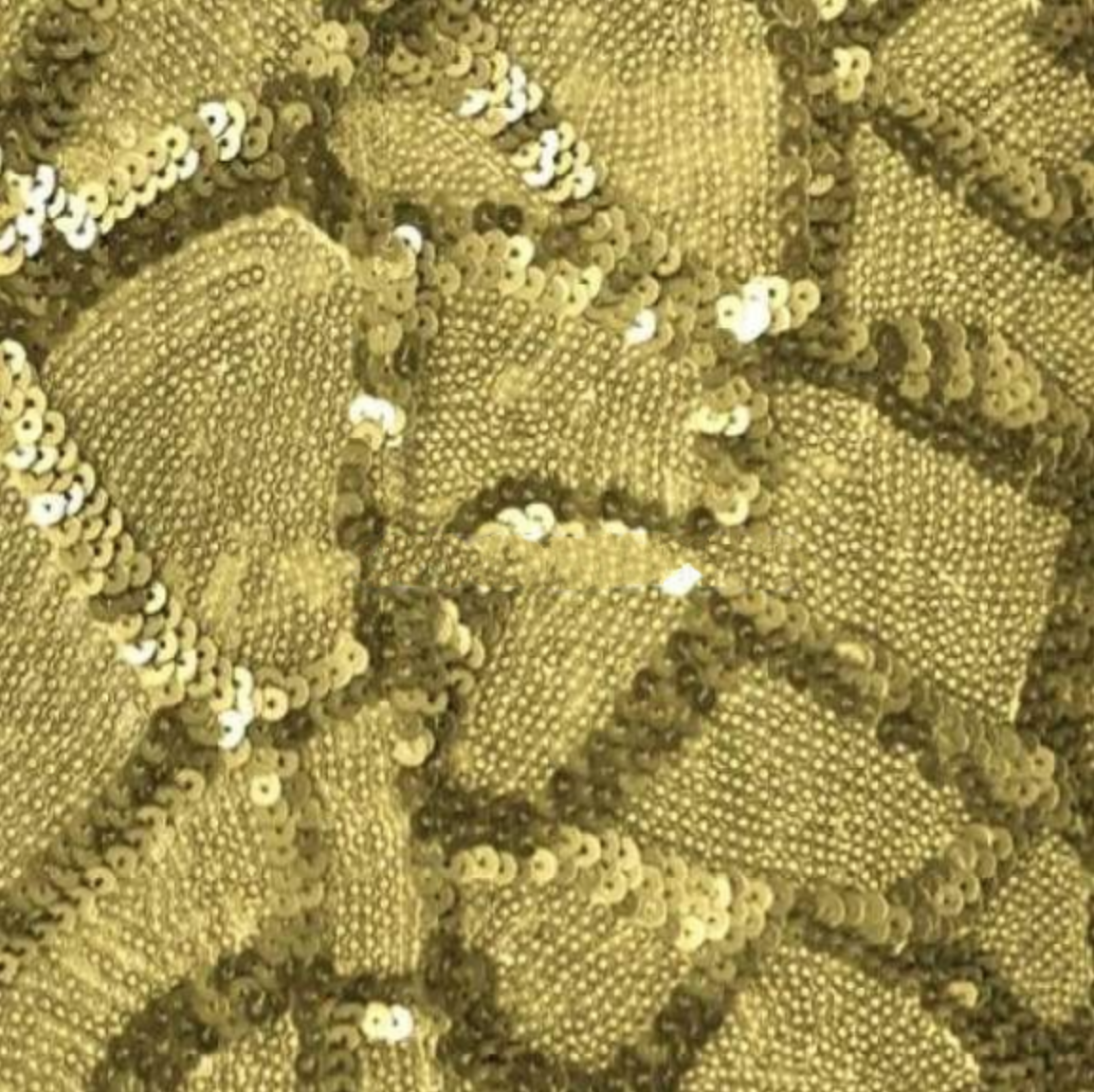 This is a Medium-Weight Two-Tone Patch Sequin on Polyester Spandex Fabric, With a 2 Way Stretch, Gold Colored