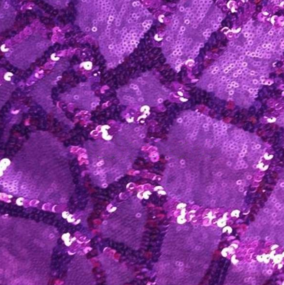 This is a Medium-Weight Two-Tone Patch Sequin on Polyester Spandex Fabric, With a 2 Way Stretch, Purple Colored