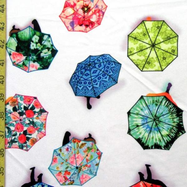 This is a Light-Weight Umbrella Print on Polyester Spandex Fabric, With a 4 Way Stretch, Multi-Colored Colored