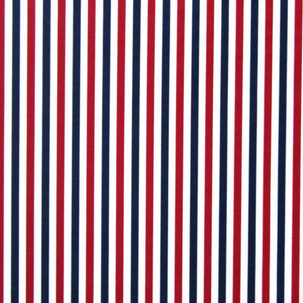 This is a Medium-Weight Vertical Stripe Print on Nylon Spandex Fabric, With a 4 Way Stretch, Red/Blue/White Colored