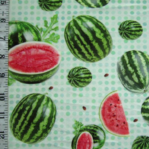 This is a Light-Weight Watermelon Print on Polyester Spandex Fabric, With a 4 Way Stretch, Multi-Colored Colored