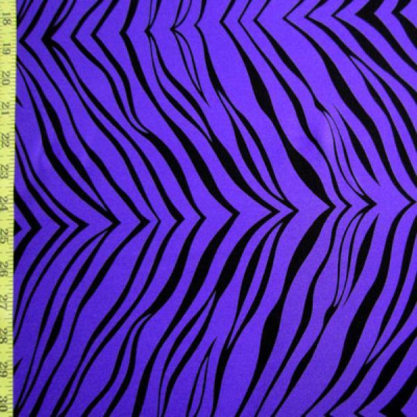 This is a Medium-Weight Zebra Print on Nylon Spandex Fabric, With a 4 Way Stretch, Deep Purple Colored
