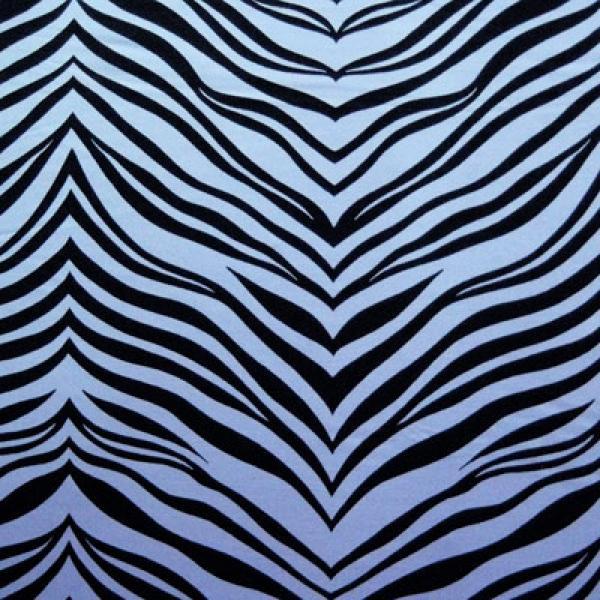 This is a Medium-Weight Zebra Print on Nylon Spandex Fabric, With a 4 Way Stretch, Lavender Colored