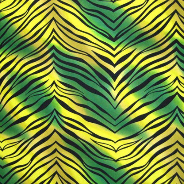 This is a Medium-Weight Zebra Print on Nylon Spandex Fabric, With a 4 Way Stretch, Multi-Colored Colored