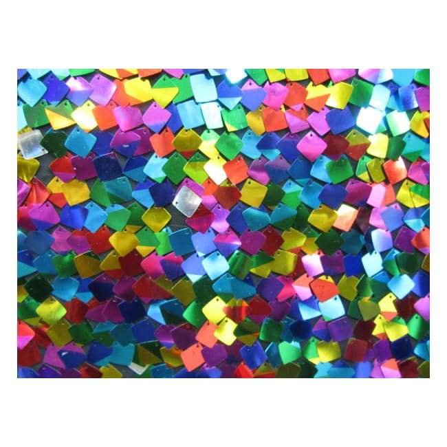 This is a Medium-Weight Big Square Sequin on Polyester Mesh Fabric, With a 2 Way Stretch, Multi-Colored Colored