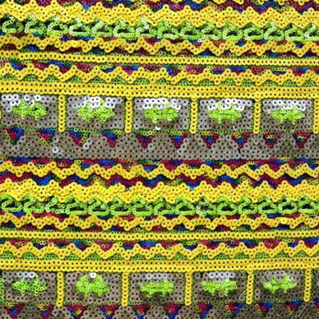 This is a Medium-Weight Colorful Sequins on Polyester Mesh Fabric, With a Non-Stretch, Multi-Colored Colored