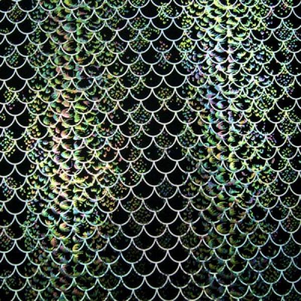 This is a Medium-Weight Holographic Metallic Foil on Nylon Spandex Fabric, With a 4 Way Stretch, Black Colored