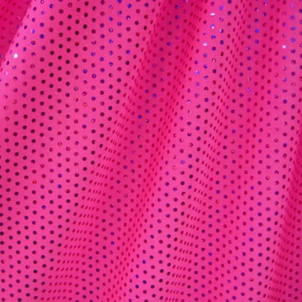 This is a Medium-Weight Holographic Sequins on Polyester Spandex Fabric, With a 2 Way Stretch, Hot Pink Colored