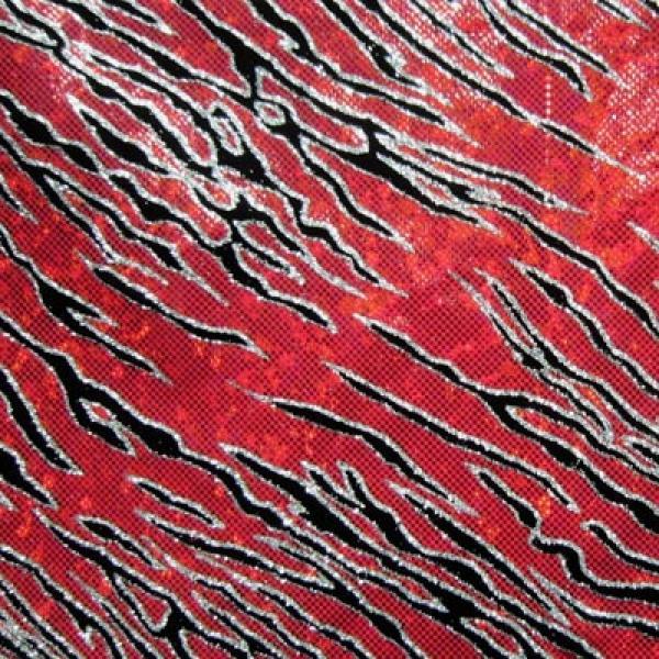 This is a Holographic Thunder Bolt Printed Metallic Foil on Spandex, 4 Way Stretch, Red Made from Spandex