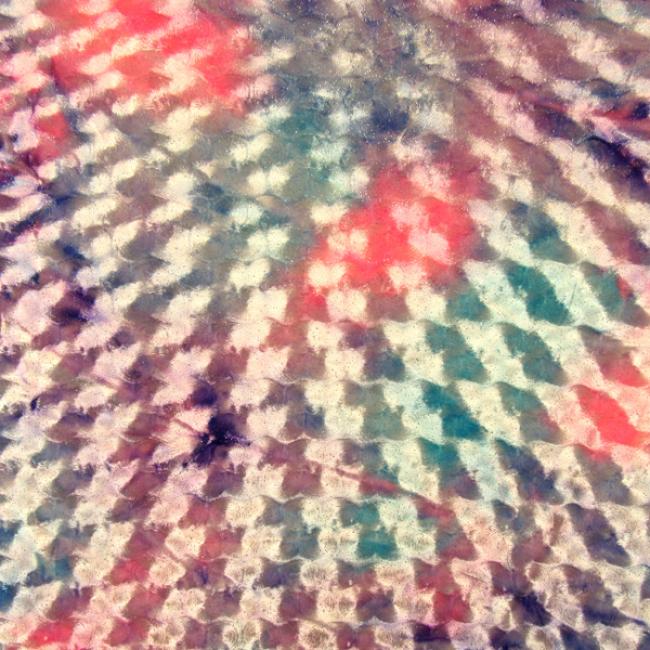 This is a Medium-Weight Glitter Crushed Velvet Fabric, With a 2 Way Stretch, Tie Dye Colored