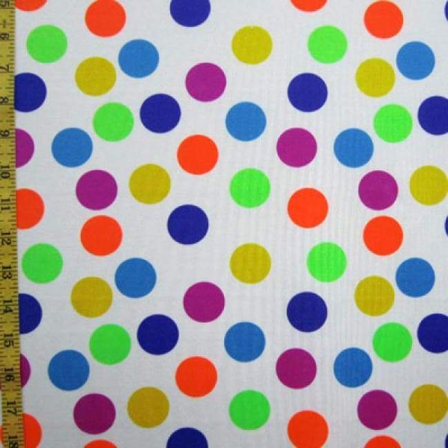 This is a Light-Weight 1" Circus Dot on Nylon Spandex Fabric, With a 4 Way Stretch, White Colored