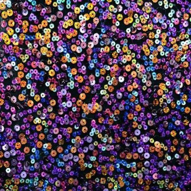 This is a Medium-Weight Colorful Sequins on Polyester Spandex Fabric, With a 2 Way Stretch, Pink/Orange/Purple Colored