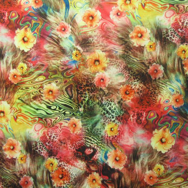 This is a Medium-Weight Floral Print Fabric, With a 2 Way Stretch, Multi Colored