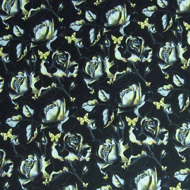 This is a Light-Weight Floral Print Fabric, With a 4 Way Stretch, Black Colored