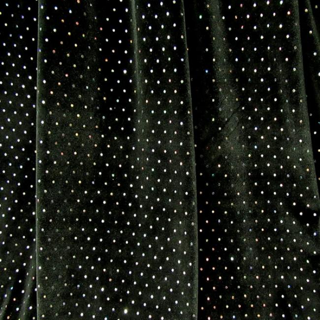 This is a Medium-Weight Glitter Holographic Foil On Velvet Fabric, With a 2 Way Stretch, Silver/Black Colored