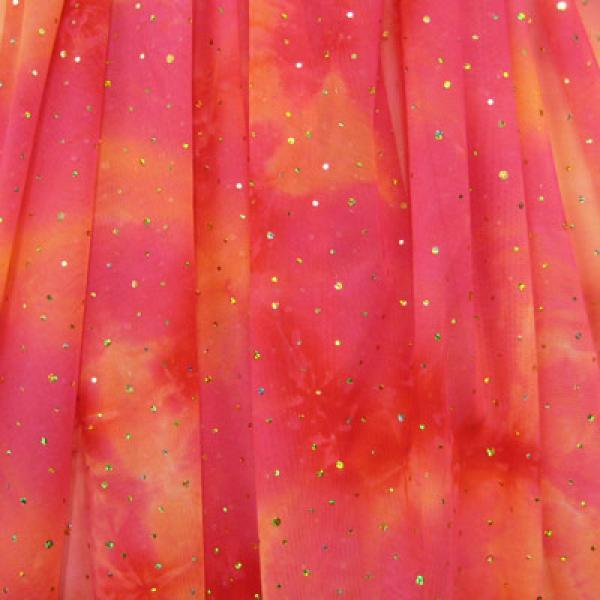 This is a Medium-Weight Holographic Sequins on Mesh on Mesh Fabric, With a 4 Way Stretch, Gold Colored