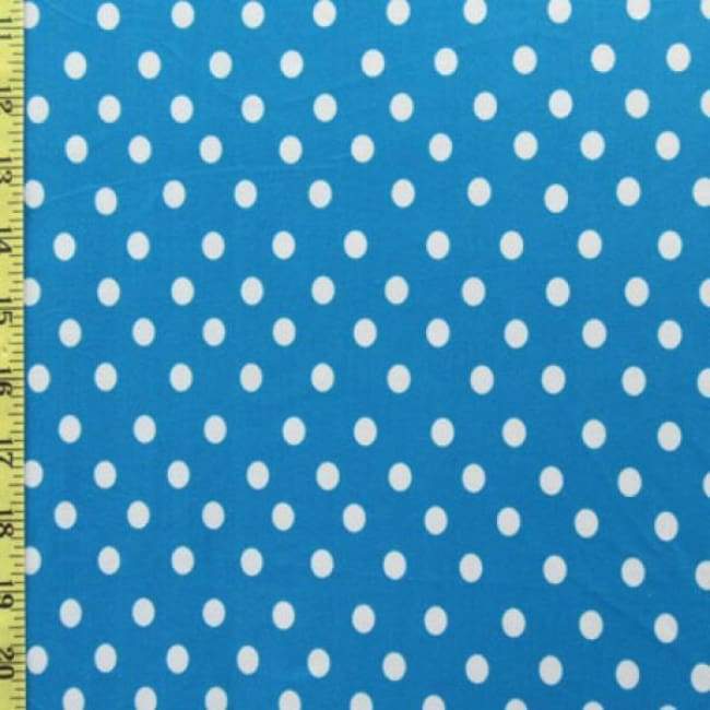 This is a Light-Weight Polka Dots Print on Nylon Spandex Fabric, With a 4 Way Stretch, White/Corona Colored