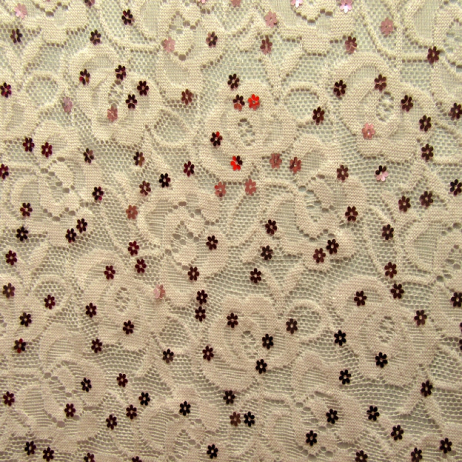 Sequin Lace On Mesh Fabric, Stretch, Blush Pink