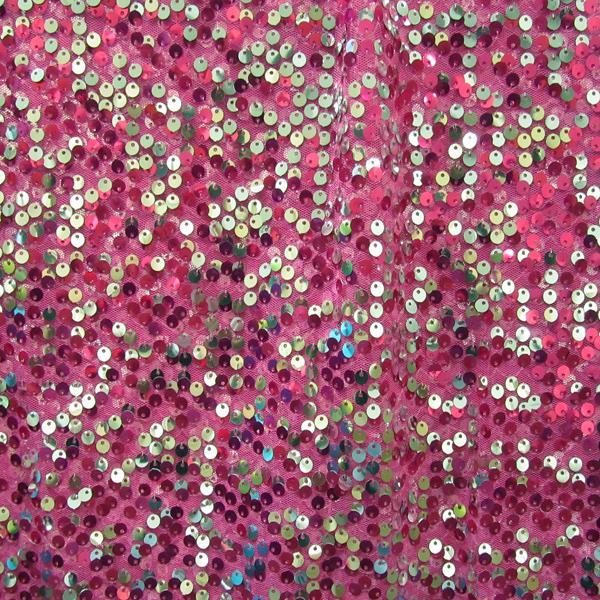 This is a Medium-Weight Sequins on Mesh Fabric, With a 2 Way Stretch, Fuchsia/Silver Colored