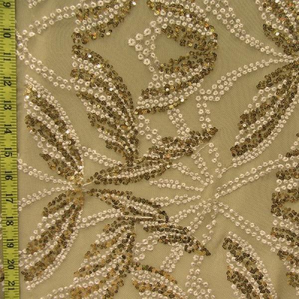 This is a Medium-Weight Sequins on Mesh on Stretch Mesh Fabric, With a 2 Way Stretch, Natural/Brown/Natural Colored