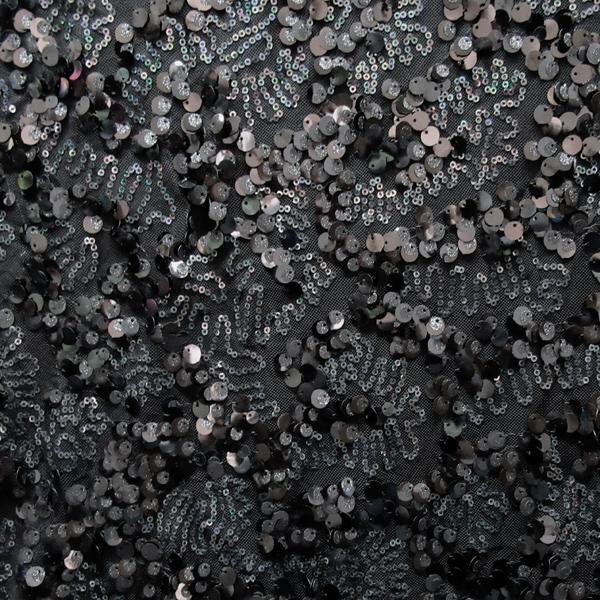 This is a Medium-Weight Sequins on Stretch Mesh Fabric, With a 2 Way Stretch, Black Colored