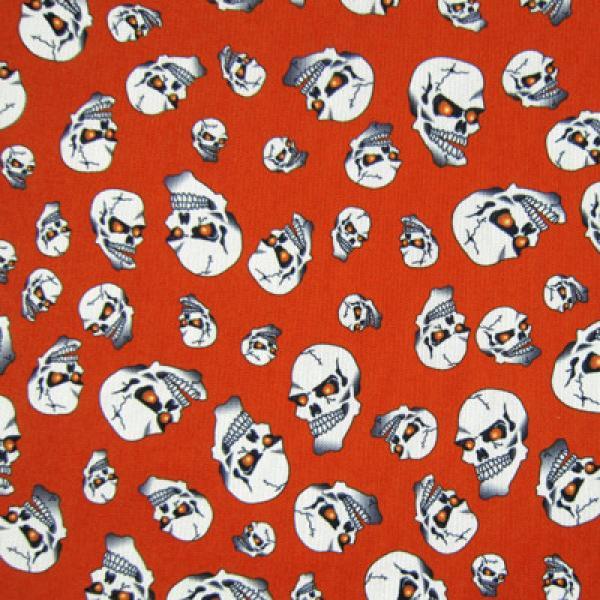 This is a Light-Weight Skull Print on Mesh on Mesh Fabric, With a 4 Way Stretch, White/Orange Colored