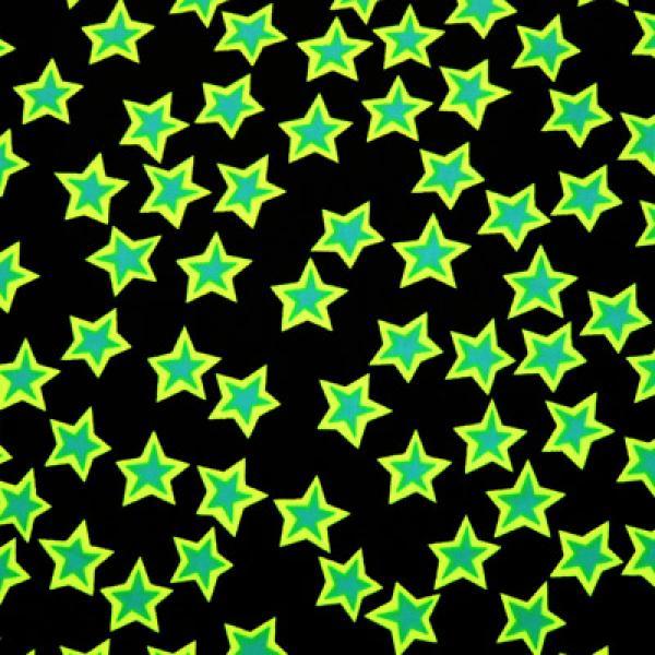 Stars Print On Polyester Spandex, 4 Way Stretch, Green/Black