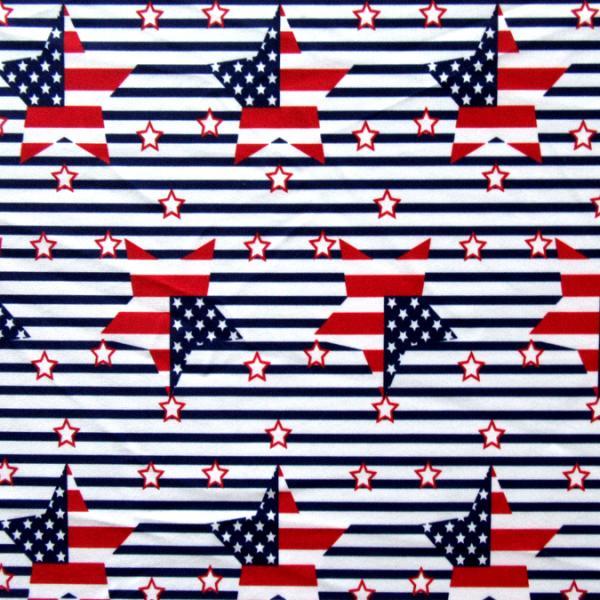 American Flag Stars & Stripes Print On Polyester Spandex, 4 Way Stretch, Blue/Red/White