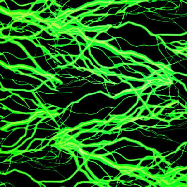 This is a Medium-Weight Thunderstorms Print on Nylon Spandex Fabric, With a 4 Way Stretch, Neon Green Colored