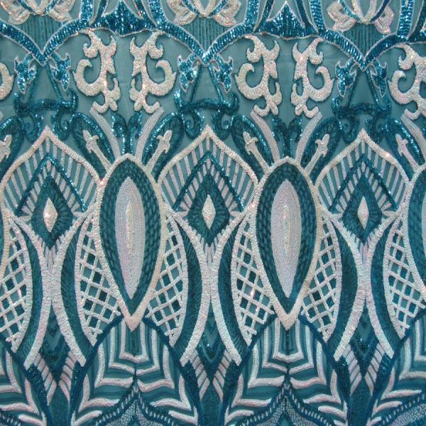 This Is A Medium-Weight Two-Tone Miner Embroidery 2Mm Sequin On Mesh, With A2 Way Stretch, Peach/White Prarl Colored