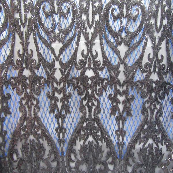 This Is A Medium-Weight Two-Tone Traditional Pattern 2Mm Sequin Embroidery On Mesh, With A2 Way Stretch, Orange Colored