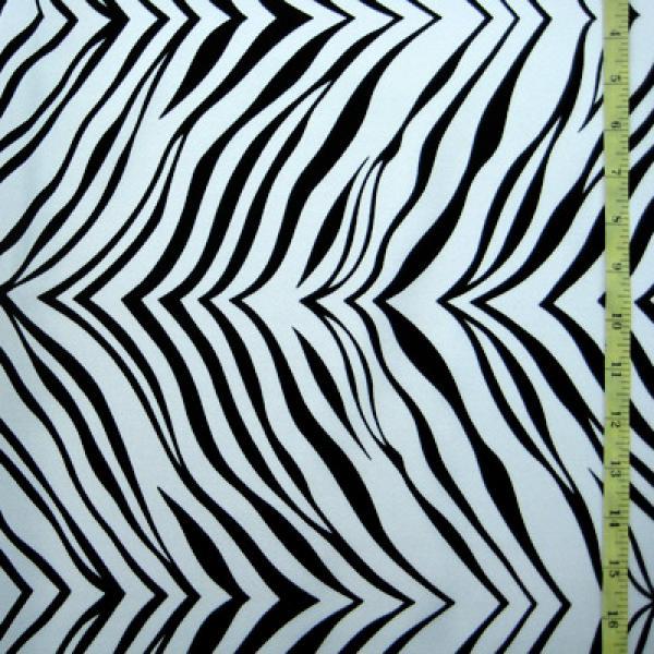 This is a Light-Weight Zebra Print on Nylon Spandex Fabric, With a 4 Way Stretch, White Colored